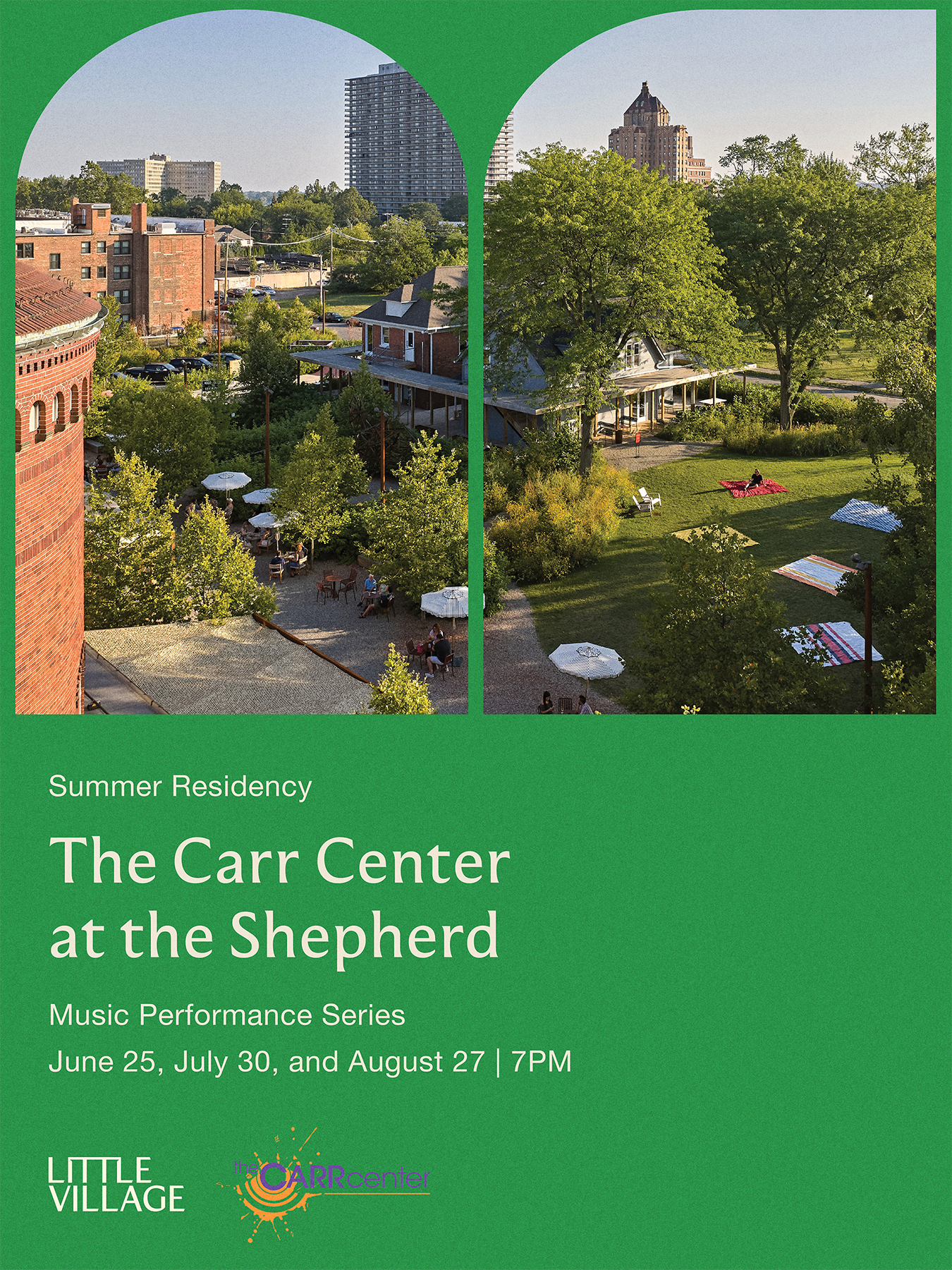 The Shepherd and Little Village are proud to host The Carr Center for a special Summer Residency, featuring a series of live musical performances on the grounds of the Shepherd!
