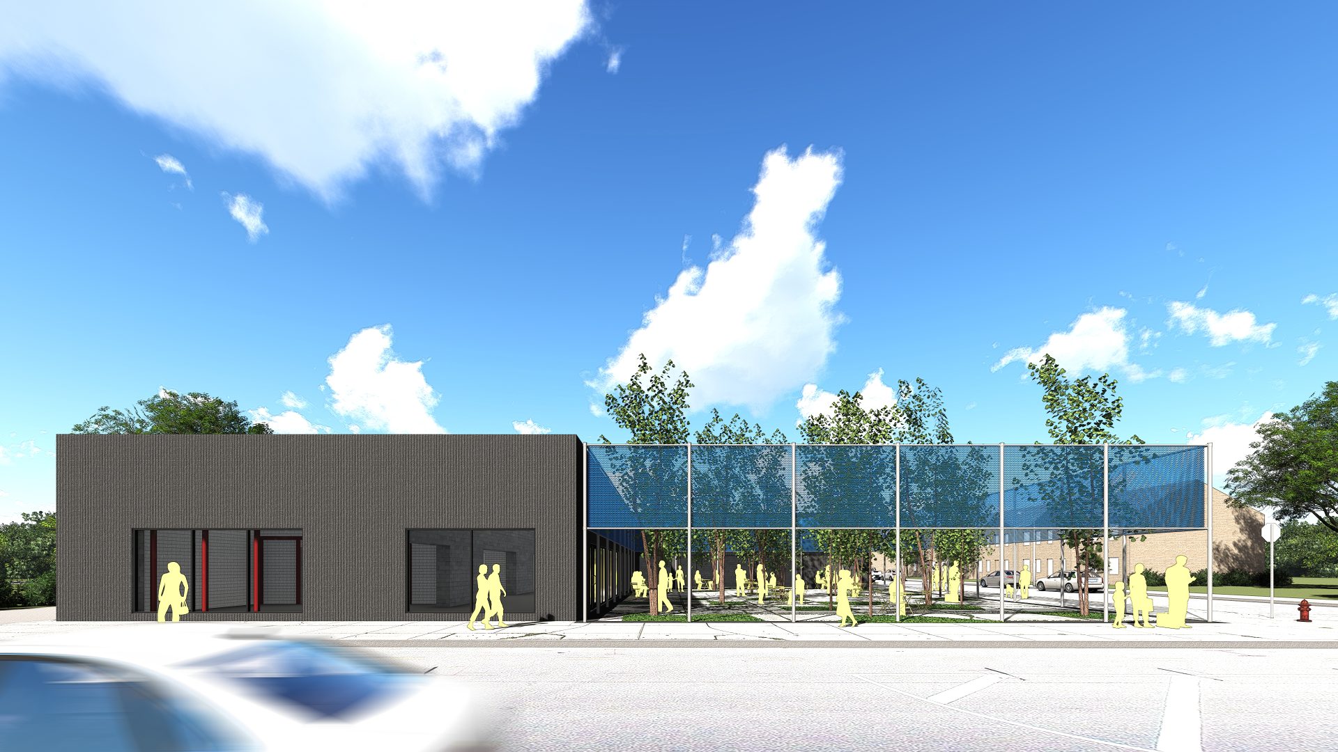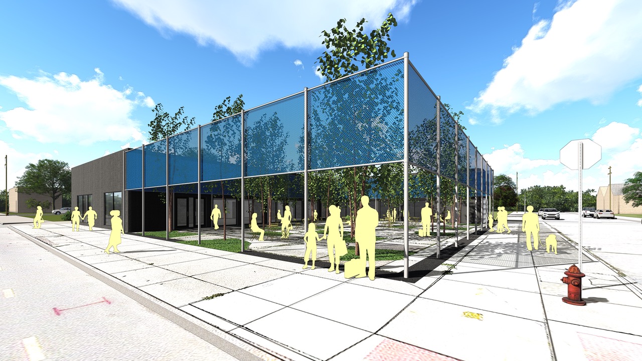 The adaptive reuse of the 7,000 square foot building was thoughtfully considered by the development team. The property once housed a food processing facility prior to sitting vacant for several decades, which caused irreparable damage to the block façade and roof structure. Designed by Ishtiaq Rafiuddin, founder of Detroit-based design studio Undecorated, the building will take on a new identity on the outside. However, most of the interior glazed brick walls and terrazzo floors have been salvaged throughout the process. New openings in the façade will flood the space with natural light and provide a direct connection to an outdoor courtyard designed by Julie Bargmann of D.I.R.T. studio. This greenspace will take shape on a former parking lot and will offer seating and programming opportunities for the public.